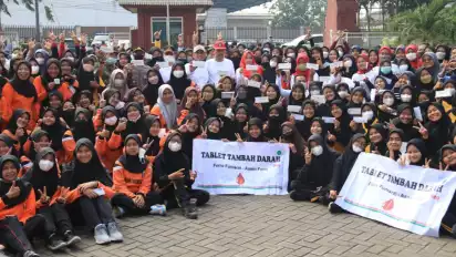 Mojokerto, Jawa Timur - Sebagai upaya preventif Pemerintah Kabupaten Mojokerto dalam menanggulangi stunting di wilayah Kabupaten Mojokerto untuk mencapai Indonesia Emas tahun 2045, Pemkab Mojokerto melalui Dinas Kesehatan Kabupaten Mojokerto menggelar minum Tablet Tambah Darah (TTD), pemeriksaan, dan edukasi gizi seimbang kepada seluruh siswi SMAN 1 Sooko. Kegiatan ini dikemas dalam agenda Jumat CERIA (Cantik, Enerjik, Rajin, Inovatif, dan Aktif).