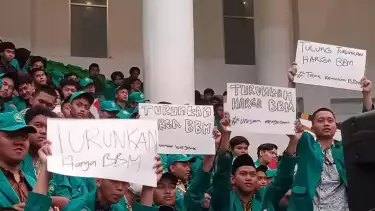 Di dalam gedung, sejumlah mahasiswa baru juga turut membentangkan sejumlah poster tentang penolakan atas kenaikan harga BBM yang saat ini sangat menyusahkan rakyat.
