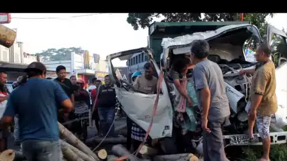 "Setelah ditabrak, beberapa batang kayu sengon langsung berjatuhan dan menimpa pengendara motor, kelihatanya bapak sama anak yang hendak berangkat sekolah," imbuhnya.