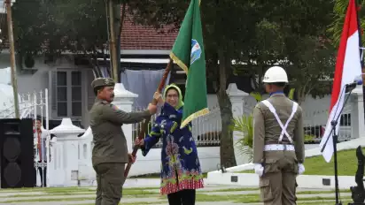Lumajang, Jawa Timur - Kirab Pataka Jer Basuki Mawa Beya Optimis Jatim Bangkit, tiba di Kota Pisang Lumajang, pada Selasa (20/9) pagi.Wakil Bupati Lumajang, Indah Amperawati menerima Tim Kirab Pataka dalam upacara penyambutan di depan Pendopo Arya Wiraraja, di Jalan Alun-Alun Selatan.