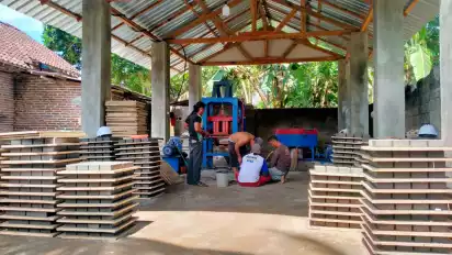 masyarakat di sekitar tambang emas Gunung Tumpangpitu, Kecamatan Pesanggaran, Banyuwangi, bangkit dengan program pembuatan paving blok