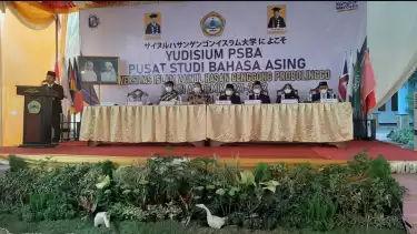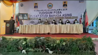 Probolinggo, Jawa Timur - Pusat Studi Bahasa Asing Universitas Islam Zainul Hasan (UNZAH) Genggong Probolinggo menggelar yudisium di halaman akademik. Sebanyak 520 mahasiswa berhasil dikukuhkan menguasai 7 macam bahasa asing, yakni Bahasa Inggris, Bahasa Arab, Bahasa Cina, Bahasa Jepang, Bahasa Korea, Bahasa Prancis, dan Bahasa Jerman, Rabu (28/09).
