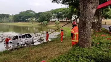 Diduga Sopir Mengantuk, Sebuah Mobil Masuk Danau di Citraland Surabaya, Satu Keluarga Selamat