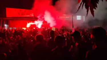 Surabaya, Jawa Timur - Keberhasilan skuad bajul ijo Persebaya Surabaya, menumbangkan Arema FC di kandang dengan skor akhir 3-2 dirayakan oleh Bonek dengan menggelar pesta kemenangan Sabtu (1/10/2022) malam. Pesta digelar di sejumlah titik di Kota Pahlawan.