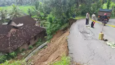 "Meski bahu jalan ambrol, ruas tersebut masih bisa dilewati kendaraan dengan cara bergantian, karena ada keretekan di bagian sisi jalan dan rawan longsor," ucapnya.