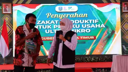 Pelaksanaan penyerahan zakat produktif, dilakukan oleh Gubernur Khofifah di sela-sela kegiatan peresmian Kantor Bersama Samsat Gresik, yang berada di Jalan Wahidin Sudirohusodo, Kecamatan Kebomas, Kabupaten Gresik.Â