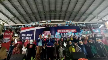 Banyuwangi, Jawa Timur - Komunitas nelayan di kabupaten Banyuwangi, Rabu (26/10) sore,  menggelar deklarasi dukungan ke Ketua DPD RI, La Nyalla Mattalitti maju dalam pencapresan pada pemilu 2024 mendatang. Salah satu alasannya, tokoh asal Surabaya ini dikenal tegas dan merakyat.