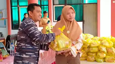 Banyuwangi, Jawa Timur - Penyaluran bantuan paket sembako kepada warga terdampak banjir di wilayah Kecamatan Pesanggaran, Kabupaten Banyuwangi, masih terus dilakukan. TNI, Polri Forkopimka setempat bersama PT BSI selaku pelaku investasi di Desa Sumberagung, menyalurkan bantuan tersebut kepada perwakilan warga di aula Kecamatan Pesanggaran.