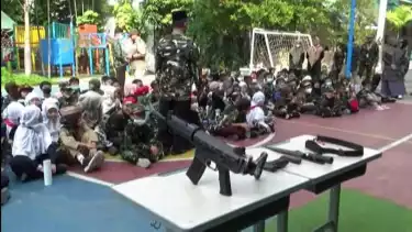 “Peringatan Hari Pahlawan tadi kita upacara bendera. Lalu kita juga dikenalkan sama bapak- bapak TNI tentang alutista, kendaraan tempur untuk menjaga dan mempertahankan negara. Senang bisa tahu ini,” ujar Arnod, siswa kelas 6, yang tampak antusias memperhatikan penjelasan personil TNI.