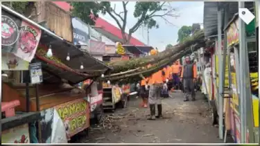 Pohon Sono Kembang Tumbang, Timpa 4 Kios PKL di Kota Batu