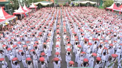 Ribuan Siswa SMPN di Sidoarjo Pecahkan Rekor MURI dengan Tari Kolosal Ngoyek Kupang