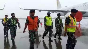 Sementara, puluhan personil tni gabungan dari TNI-AL dan TNI-AU bergantian melakukan pengetatan pengamanan di apron bandara.
