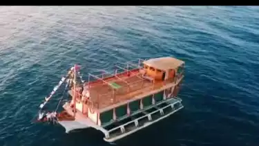 Sebuah kapal laut disulap menjadi kapal terapung bernuansa kapal pesiar, tak ayal sensasi destinasi baru ini menjadi favorit wisatawan lokal maupun asing Pulau
