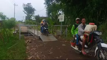 Banyuwangi, Jawa Timur - Tiga jembatan yang putus akibat banjir bandang di Kecamatan Kalibaru, Banyuwangi, belum sepenuhnya dibangun. Akibatnya, warga harus berjalan memutar ketika keluar kampung. Sementara, warga memanfaatkan jembatan darurat yang hanya bisa dilalui kendaraan roda dua.