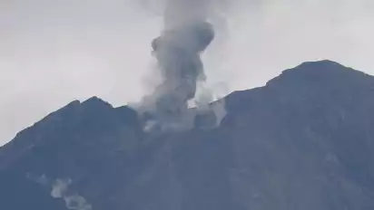 " Teramati pula 16 kali letusan dengan tinggi 400 hingga 500 meter, dengan warna asap putih kelabu ke arah timur laut," jelas Liswanto dalam laporan tertulisnya.