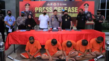 Adapun lima orang pelaku yang ditangkap dan ditetapkan menjadi tersangka, yakni AER (33) warga Desa Jejel, Kecamatan Ngimbang, Kabupaten Lamongan, DNA (19) dan ALS (28) warga Gadung, Driyorejo, Gresik, MKE (18), warga Desa Mojosarirejo Driyorejo, Gresik, dan AJP (19) warga NTT yang tinggal di Kota Baru Driyorejo (KBD).