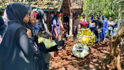 Jenazah Briptu Anumerta Anam Dimakamkan Secara Kedinasan, Semasa Hidup Almarhum Ternyata Guru Ngaji bagi Anak-Anak di Kampungnya