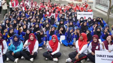 Mojokerto, Jawa Timur - Bupati Mojokerto, Ikfina Fahmawati terus mengkampanyekan minum Tablet Tambah Darah (TTD) secara serentak. Kampanye minum TTD tersebut dilakukan oleh Bupati Ikfina, agar kedepannya para siswi yang akan menjadi calon ibu tidak melahirkan bayi stunting yang disebabkan dari faktor kurang darah atau anemia.