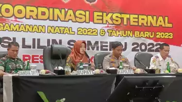 Rakor Natal dan Tahun Baru (Nataru) yang bertajuk 'Operasi Lilin Semeru Tahun 2022' dihadiri Bupati Mojokerto Ikfina Fahmawati, dilaksanakan di aula ballroom Hotel Aston, Senin (19/12). Giat ini juga dihadiri Kapolres Mojokerto AKBP Apip Ginanjar, Pasiops Kodim 0815/Mojokerto Lettu Inf Akhmad Rifa’i mewakili Dandim 0815, Kepala DPRKP2 Kabupaten Mojokerto Rachmat Suharyono, Kepala Disbudporapar Kabupaten Mojokerto Norman Handhito, Kadis Kesehatan Kabupaten Mojokerto dr. Ulum Rokhmat, Kalaksa BPBD Kabupaten Mojokerto Yo'i Afrida, Kepala Satpol PP Kabupaten Mojokerto Eddy Taufiq, Ketua FKUB, Ketua MUI Kabupaten Mojokerto, pengelola wisata, dan perwakilan pengurus Gereja di wilayah Kabupaten Mojokerto.