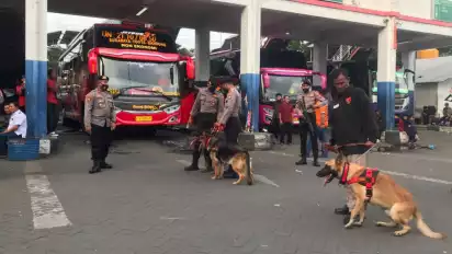 Pengamanan Jelang Nataru, Polresta Sidoarjo Siagakan Anjing Pelacak di Terminal Purabaya