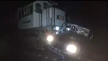 Ngawi, Jawa Timur - Kereta Api (KA) Sancaka relasi Surabaya Gubeng-Yogyakarta menabrak sebuah minibus jenis Mitsubishi Kuda nopol AE 1693 GA di perlintasan sebidang kereta api di jalan raya Magetan-Ngawi, tepatnya masuk Desa Keras Wetan, Kecamatan Geneng Kabupaten Ngawi, Jumat (23/12/2022) pukul 01.46 WIB.