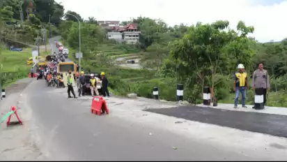 "Perbaikan jalan sudah selesai. sudah tidak ada penutupan jalan untuk roda empat namun warga harus hati-hati," jelas Kepala Dinas PUPR Kota Alfi Nurhidayat, saat meninjau perbaikan jalan bersama Forkompimda Kota Batu.