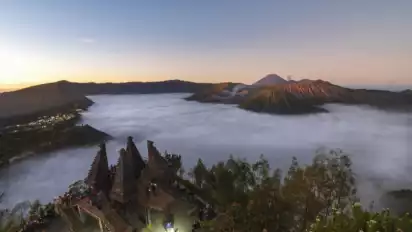 "Nah, untuk bagian tengah selatan terdapat Bromo Tengger Semeru (BTS). Yang akan menjadi sesuatu yang baru dan menarik para pengunjung adalah jembatan Kaca Seruni Point yang akan kita resmikan dan akan menjadi tempat ikonik di BTS," kata Khofifah.