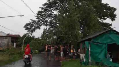 "Tadi saya berteduh. Tiba-tiba banyak tiang yang ambruk ke tengah jalan dan kabelnya menutup jalan," kata Zainal.