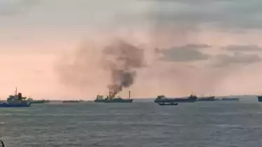 Sebuah Kapal Kargo Terbakar Ditengah Perairan Gresik saat Antre Muat Semen