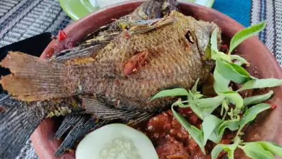 Lamongan, Jawa Timur - Sambal Orek Ikan Nila menjadi menu favorit di salah satu Cafe di Lamongan. Hasil tangkapan dan pancingan langsung di lokasi cafe ini menjadi daya tarik yang berbeda dari cafe lainnya. Selain menyediakan ikan nila yang segar, cafe Prasojo milik Ismawan yang berada di Desa Surabayan, Kecamatan Sukodadi, Lamongan ini juga menyediakan berbagai masakan lainnya, seperti sambal ayam goreng kampung.