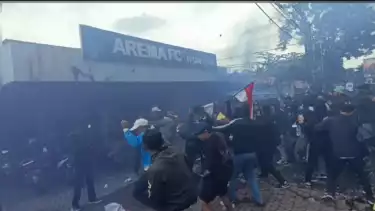Unjuk rasa ini berlangsung ricuh dan mengakibatkan Kantor Arema FC di Jalan Mayjend Panjaitan, Kota Malang, rusak parah.