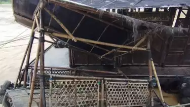 "Arus deras sungai membawa sampah kayu yang menyangkut pada bagian tali jangkar Masjid, karena tak kuat menahan beban, kedua tali penguat Masjid tersebut putus," terang Ryan Yudyanto, seorang takmir Masjid Apung ini menerangkanterangnya.