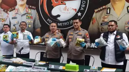 Jakarta - Polda Metro Jaya mengungkap kasus peredaran narkotika jenis sabu dengan berat total 109,9 kilogram (kg) yang merupakan jaringan Sumatera, Jakarta, Tangerang.