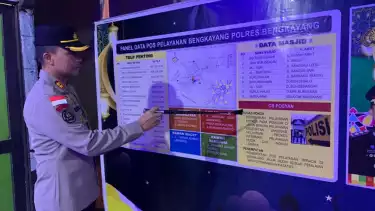 Bengkayang, tvOnenews.com - Kepala Kepolisian Resor Bengkayang Polda Kalbar AKBP Bayu Suseno melakukan pengecekan dan memastikan kesiapan Pos Pelayanan (Posyan) dalam Operasi Ketupat Kapuas 2023, menjelang Hari Raya Idul Fitri 1444 Hijriah, Sabtu (15/4/23) malam.