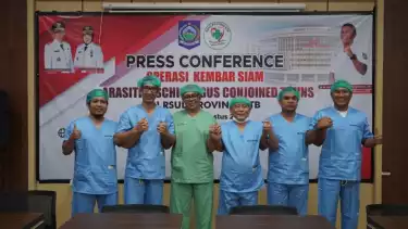 "Jadi hari ini kita sudah berhasil melakukan tindakan oprasi pemisahan bayi kembar siam atas nama Muhamad Karunia," ucap Direktur Rumah Sakit Umum Provinsi (RSUP) NTB dr. Lalu Herman Mahaputra dalam konferensi pers bersama tim dokter ahli kembar siam di Aula dr. Soewignjo RSUP NTB, Sabtu (5/08/23).