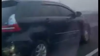 Terlihat juga pengemudi dan penumpang sejumlah mobil yang terlibat dalam kecelakaan beruntun itu berlari menyelamatkan diri.