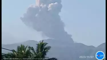 Halmahera Utara, tvOnenews.com - Gunung api Dukono Halmahera Utara, Maluku Utara mengalami erupsi, dengan tinggi kolom abu teramati kurang lebih 1200 Meter di atas puncak kawah gunung, Selasa, (7/11/2023) sekitar pukul 11.07 WIT.