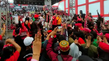Kutai Kartanegara, tvOnenews.com - Calon presiden nomor urut 3, Ganjar Pranowo, sampaikan tiga pesan penting ke ribuan relawan dan simpatisannya ketika mengunjungi Kutai Kartanegara (Kukar) di kawasan Stadion Aji Imbut Tenggarong, Rabu (6/12/2023).