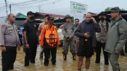 Pada kesempatan yang sama, Dir Polairud Polda Papua Kombes Pol Kasmolan bersama Wakil Wali Kota Jayapura Rustam Saru juga meninjau lokasi terdampak bajir di Pasar Youtefa.