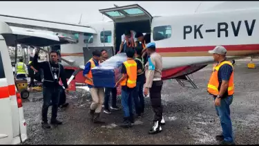 “Sangat disayangkan masyarakat sipil kembali menjadi korban kekejaman KKB dan untuk diketahui pada pukul 08.25 WIT, Jenazah Daeng Rusli korban kekejaman KKB di Paniai, tiba di Bandara Mosez Kilangin Timika dengan menggunakan Pesawat Reven PK RVV,” ujar Kasatgas Humas.
