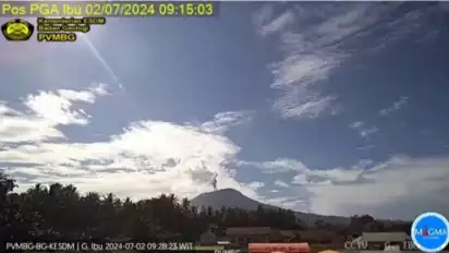 Halmahera Barat, tvOnenews.com - Gunung Ibu di Pulau Halmahera, Maluku Utara kembali meletus dan memuntahkan abu vulkanik setinggi 600 meter dari puncak kawah aktif, Selasa (2/7/2024).