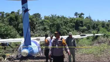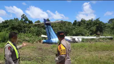 Polres Yapen Lakukan Olah TKP Tergelincirnya Pesawat Trigana