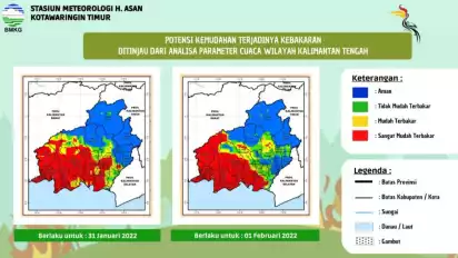 "Pada 31 Januari 2022 dan 1 Februari 2022 di wilayah bagian tengah dan Selatan Kotim berstatus sangat mudah terbakar," kata Kepala BMKG Stasiun Meteorologi H Asan Sampit, Musuhanaya, Senin (31/01/2022).