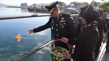 Upacara tabur bunga di laut dilakukan untuk mengenang para Pahlawan yang telah gugur dalam merebut dan mempertahankan kemerdekaan Indonesia.