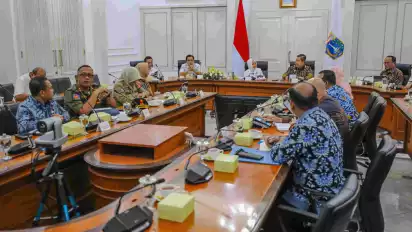 tvOnenews.com - Dalam rangka mengantisipasi potensi curah hujan yang diprediksi tinggi pada 6-9 Desember 2024, Pemprov DKI Jakarta bersama Badan Meteorologi, Klimatologi, dan Geofisika (BMKG) RI menggelar rapat koordinasi siaga banjir di Balai Kota DKI Jakarta, pada Kamis (5/12).