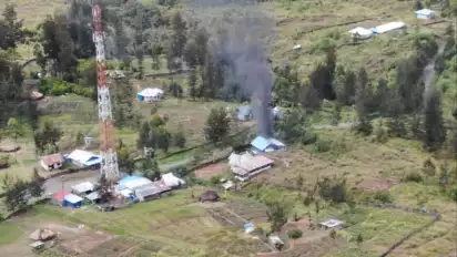 "Hasil dari pantauan drone, terlihat 7 orang KST dengan membawa senjata 1 Pucuk SS1 berada di sekitar Tower Telkomsel dan kepulan asap berasal dari rumah warga yang dibakar," ungkap Kapendam.