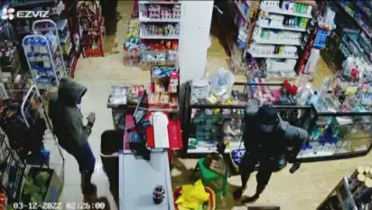 Terlihat dua (2) pelaku leluasa menyatroni ratusan bungkus rokok dan beberapa slop berbagai macam merek yang tersusun di etalase dan rak yang ada di bagian kasir, kemudian dimasukkan ke dalam kardus. Meski terlihat jelas, namun wajah mereka tertutup karena menggunakan masker dan penutup wajah.