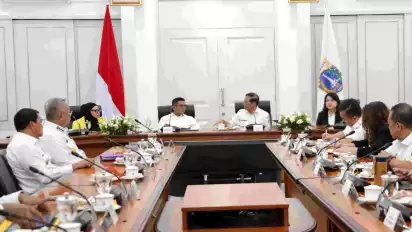 tvOnenews.com - Gubernur DKI Jakarta Pramono Anung Wibowo menerima kedatangan Gubernur Banten Andra Soni, Wali Kota Tangerang Sachrudin, Wali Kota Tangerang Selatan Benyamin Davnie, serta Bupati Tangerang Mochamad Maesyal Rasyid di Balai Kota DKI Jakarta, Jakarta Pusat, pada Rabu (9/4). Gubernur Pramono berdiskusi terkait potensi kerja sama di bidang transportasi, lingkungan, hingga kebijakan administrasi. Hal ini ditujukan untuk memperkuat kolaborasi antardaerah penyangga dalam menyelesaikan berbagai permasalahan kota.