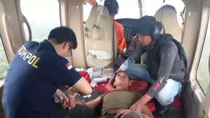 "Koordinat sudah dikirim, namun helikopter tidak bisa mendarat karena landing zone-nya tertutup arus sungai. Berkat kerja keras akhirnya helikopter berhasil evakuasi korban tersebut," tuturnya.