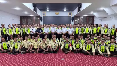tvOnenews.com - Menghadapi masa libur panjang dan cuti bersama yang akan dimulai pada kamis 29 Mei 2025, KAI Services menggelar pembinaan kepada satuan keamanan di wilayah kerja Daop 1 Jakarta di Auditorium Kantor Pusat KAI Services pada Rabu (28/5). Sebanyak 100 peserta satuan keamanan mengikuti pembinaan yang berlangsung selama dua hari ini. Hadir dalam pembinaan ini, Plt Direktur Keuangan KAI Services, Deny Eko Andryanto dan Vice President Security KAI Services, Duhuri Kurniawan.